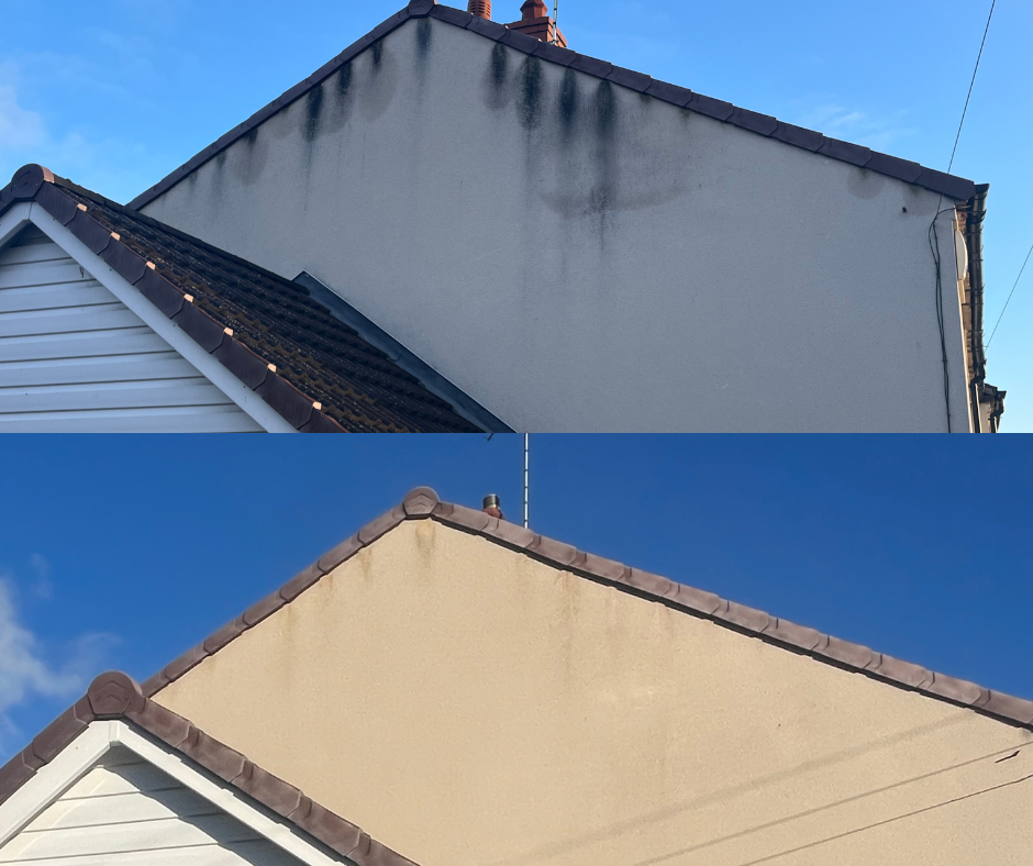 This is where softwash cleaning and render cleaning come into their own. Softwashing uses specialised, eco-friendly cleaning solutions applied at a low pressure to kill off the root spores of algae, mould, and bacteria. It gently cleans and sanitises the surface without blasting away your expensive render, leaving your walls looking fresh and keeping organic growth at bay for much longer.