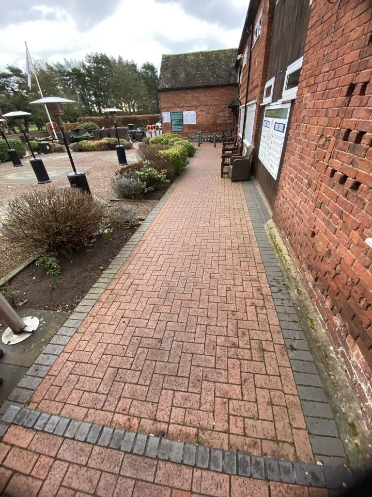 We were brought in to tackle the block-paved walkways, clubhouse approaches, and covered paths at a high-end golf club.